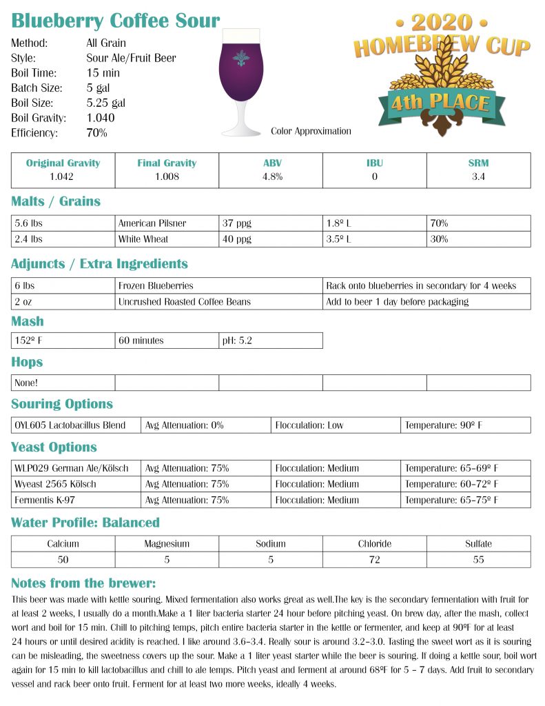 It’s nice to describe a beer as beautiful. This one definitely is in terms of looks, smells, and tastes. All the goodness from sour beer, blueberries, and coffee blend perfectly in this recipe.